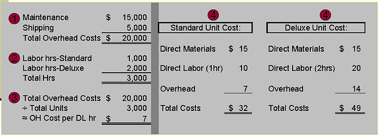 Berdasarkan asumsi sebelumnya, biaya dapat dialokasikan, berdasarkan unit, sebagai berikut: